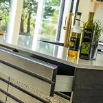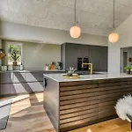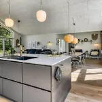 BV234-Blavand-Pouls-Bjerge-14 villa heeft een ingerichte kitchenette, voorzien van een koffie/theezetapparaat, een koelkast en een oven. De villa ligt op een klein stukje lopen van Biergarten Blavand, dat gerechten uit de Duitse keuken aanbiedt.